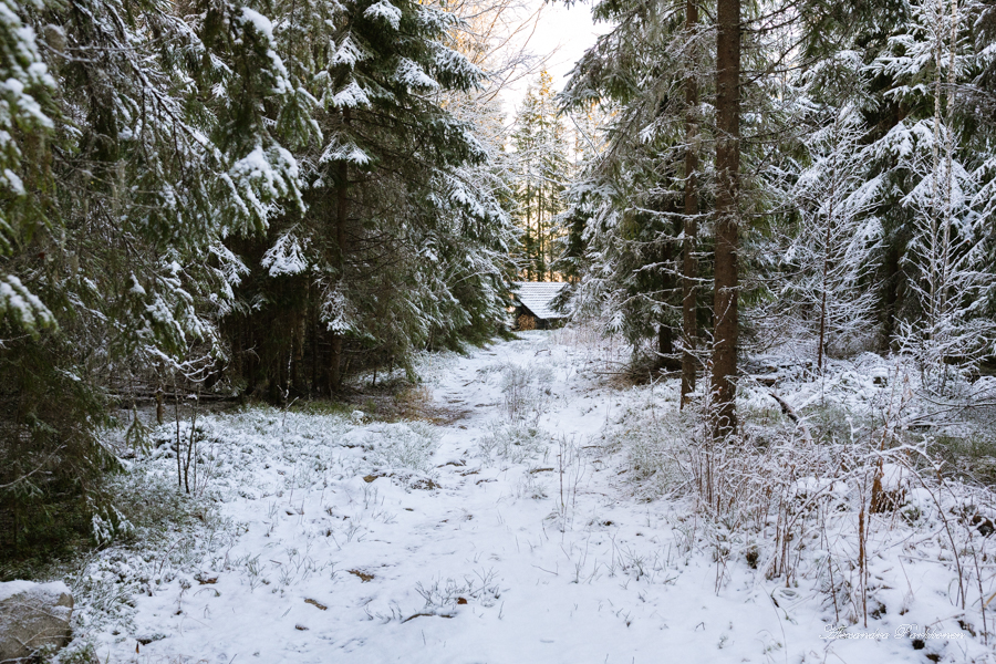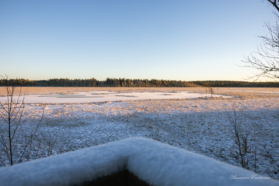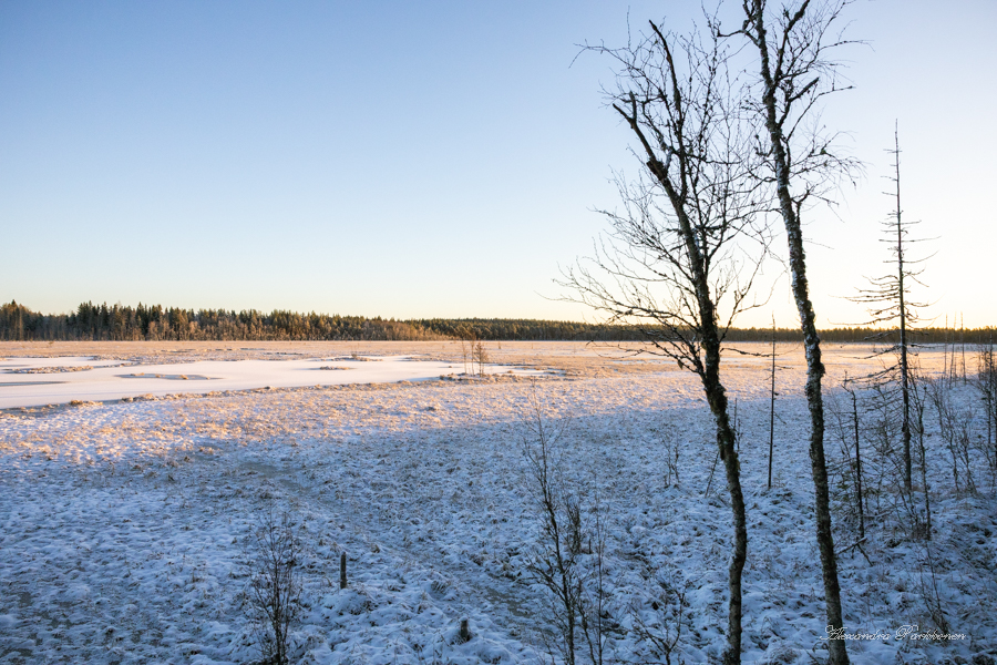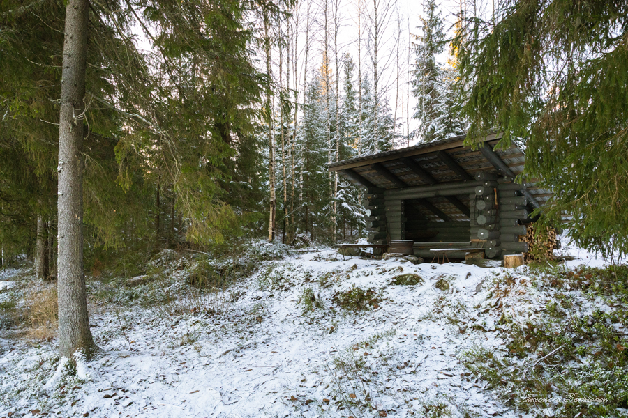 Kirjoitin omat terveiseni vieraskirjaan, söin lounaani loppuun ja päätin lähteä takaisin kohti autoa. Olen kiitollinen kaikista saamistani retkikohdevinkeistä niin myös tästä. Kesällä pohdin laavulle saapumista metsäautotietä pitkin autolla. Nyt tarkastellessa tiellä oli jonkun verran vettä, mutta jään vuoksi kuoppien syvyyttä oli vaikea arvioida. Metsätien päässä on kuitenkin tilava kääntöympyrä, joten laavulle voisi päästä myös autolla aika lähelle.