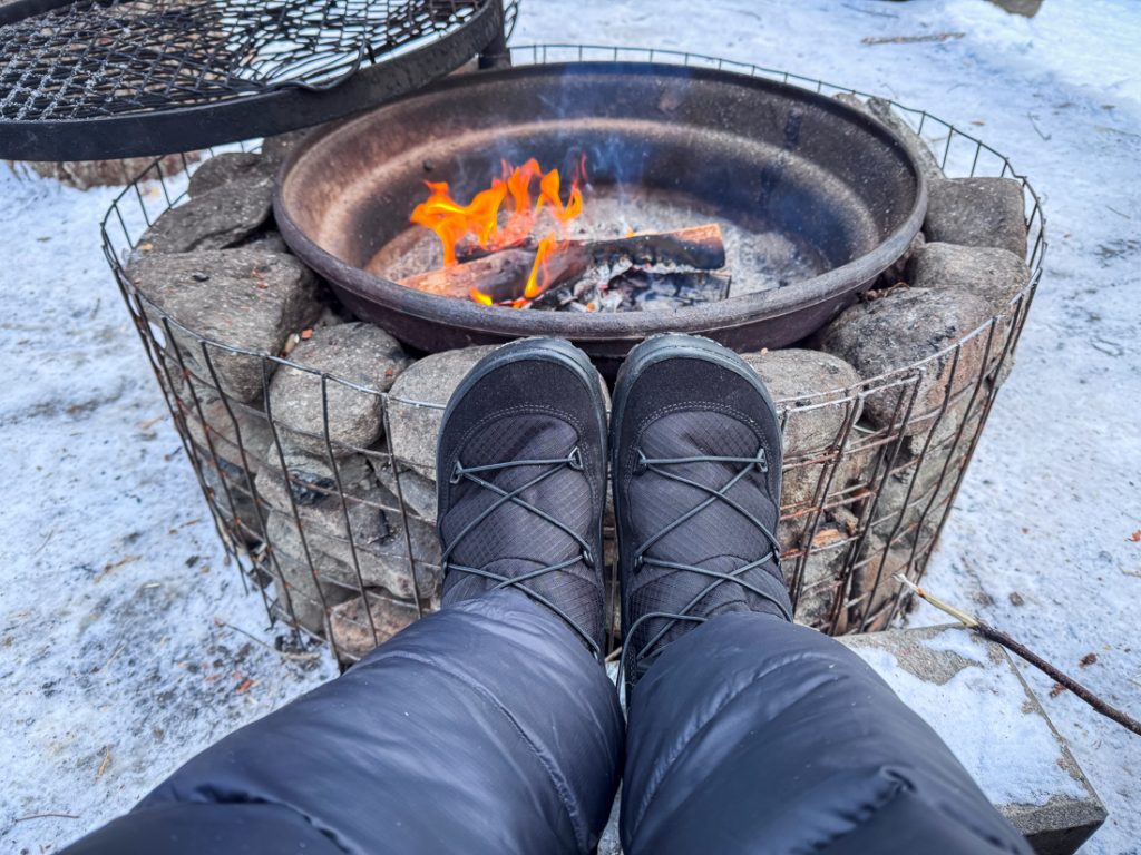 Olen kuitenkin saanut positiivisesti yllättyä. Nämä Froddon talvikengät olen pukenut jalkaani niille retkille, kun suuntaan pelkästään laavulle ja matka on suhteellisen lyhyt. Kylmimmillään sää on ollut -15 pakkasasteessa eivätkä varpaani ole päässeet palelemaan.