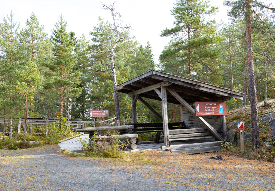 Palvelut: paikoitusalue, laavu, kota, 3 esteetöntä käymälää, käymälä, levähdyspaikkoja, sähköpistokkeita